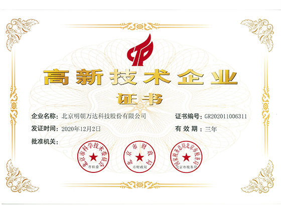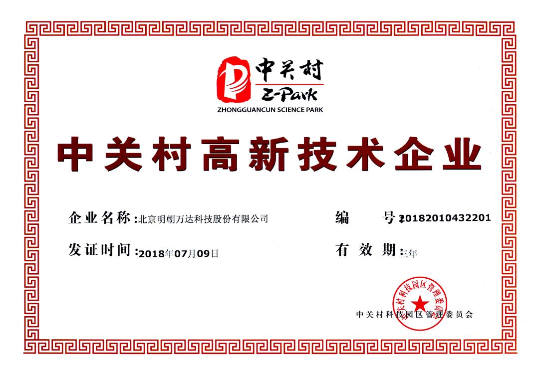 中關(guān)村高新技術(shù)企業(yè)證書(shū)