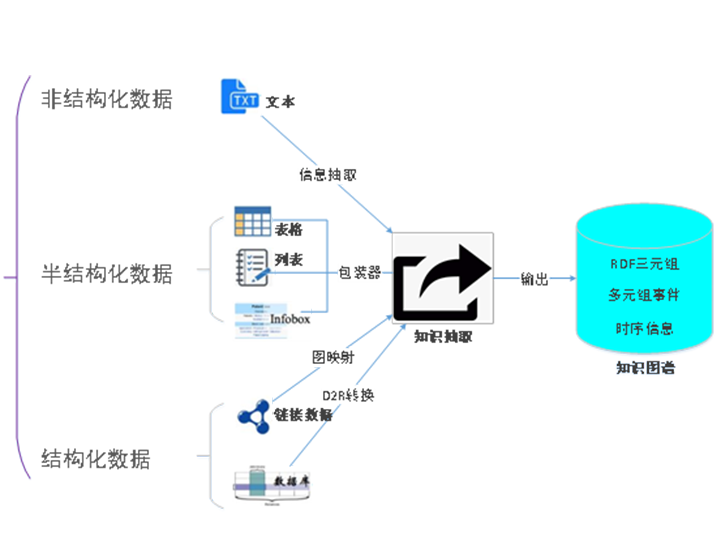知識抽取是指從不同來源、不同結構的數(shù)據(jù)中進行知識提取,提取出數(shù)據(jù)內涵的事實性信息并供給知識圖譜做進一步加工處理后會形成知識,存入到知識圖譜。