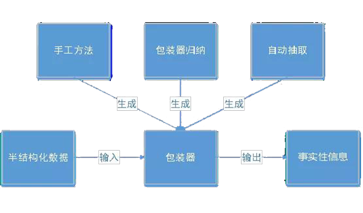 半結構化數(shù)據(jù)是指類似于百科、商品列表等本身存在一定結構但需要進一步提取整理的數(shù)據(jù)。面向半結構化的知識抽取使用包裝器實現(xiàn),其基本流程如下: