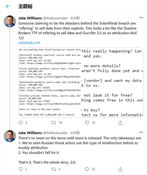 一位安全研究人員報(bào)道了這一消息,他稱(chēng)這些黑客似乎來(lái)自俄羅斯知名黑客組織 Shadow Brokers。但他們有可能是為了混淆視聽(tīng),并非真正擁有這些源代碼訪問(wèn)權(quán)限。