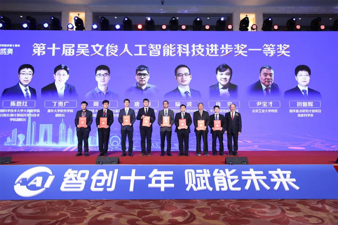吳文俊人工智能科學(xué)技術(shù)獎(jiǎng)被業(yè)界譽(yù)為“中國(guó)智能科學(xué)技術(shù)最高獎(jiǎng)”,中國(guó)科協(xié)黨組書記、常務(wù)副主席、書記處第一書記、中國(guó)科學(xué)院院士懷進(jìn)鵬,國(guó)務(wù)院參事室黨組成員、副主任趙冰,中國(guó)工程院副院長(zhǎng)、中國(guó)工程院院士何華武,國(guó)務(wù)院參事、中國(guó)工程院院士、中國(guó)人工智能學(xué)會(huì)理事長(zhǎng)戴瓊海,中國(guó)工程院院士、中國(guó)人工智能學(xué)會(huì)名譽(yù)理事長(zhǎng)李德毅,中國(guó)工程院院士、中國(guó)電子科技集團(tuán)研究員周壽桓,中國(guó)工程院院士、中國(guó)人工智能學(xué)會(huì)副理事長(zhǎng)王恩東,國(guó)家自然科學(xué)基金委信息科學(xué)部副主任張兆田,中國(guó)信息通信研究院總工程師王愛華等出席了頒獎(jiǎng)盛典。