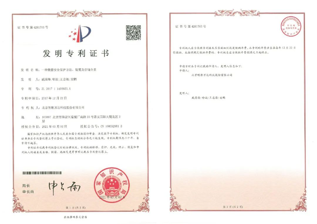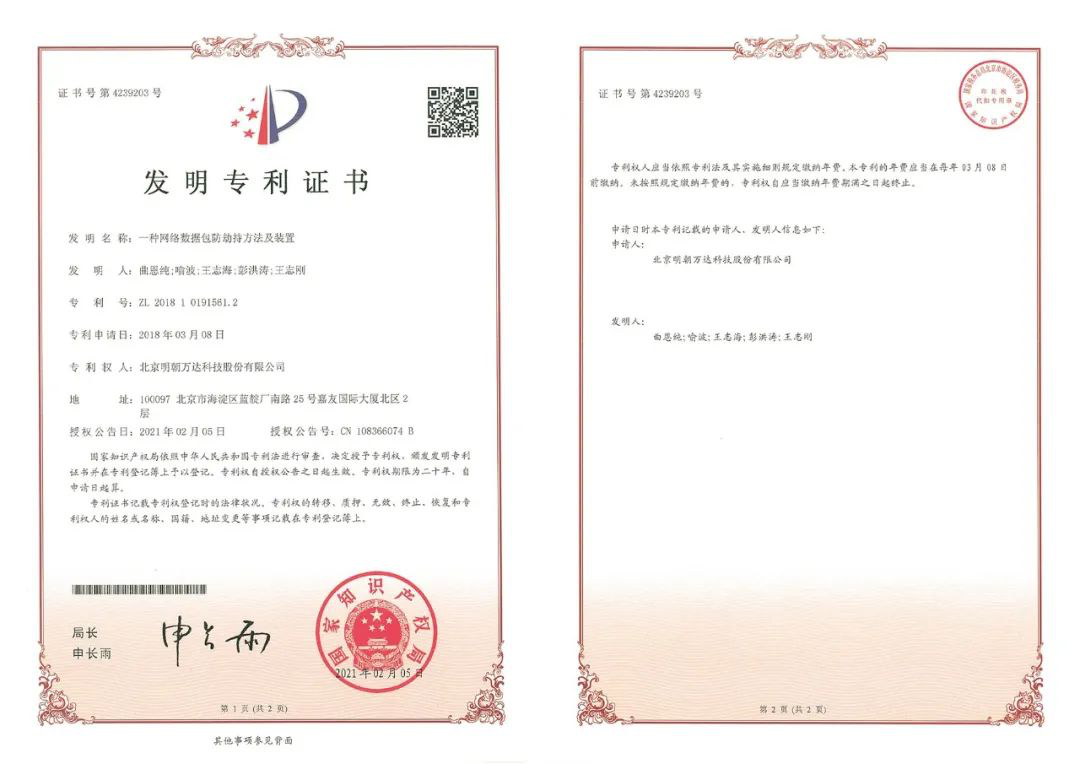 作為中國新一代信息安全技術(shù)企業(yè)的代表廠商,明朝萬達(dá)始終堅持將技術(shù)創(chuàng)新作為企業(yè)發(fā)展的核心推動力,打造了一支由清華大學(xué)博士和碩士為骨干力量的研發(fā)團(tuán)隊,支撐起公司強(qiáng)大的自主知識產(chǎn)權(quán)體系與核心競爭力。截止目前,公司已申請發(fā)明專利300余項,授權(quán)專利近140項。