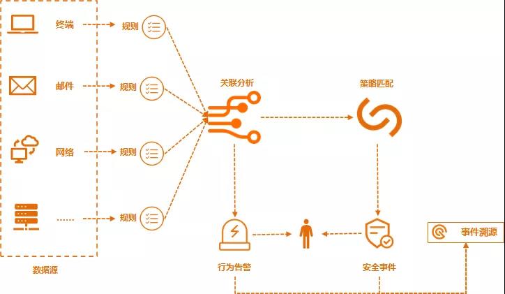 傳統(tǒng)的安全產(chǎn)品由于缺乏對(duì)用戶異常行為的關(guān)聯(lián)分析,從而無(wú)法快速準(zhǔn)確地識(shí)別定位風(fēng)險(xiǎn)以及追蹤溯源,已逐漸不能滿足當(dāng)前企業(yè)的安全需求。
