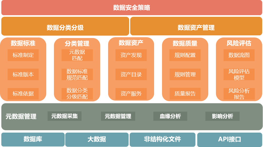 該平臺(tái)通過數(shù)據(jù)采集、數(shù)據(jù)資產(chǎn)梳理、數(shù)據(jù)分類分級(jí)、數(shù)據(jù)風(fēng)險(xiǎn)評(píng)估等手段,有效幫助用戶解決政企內(nèi)部數(shù)據(jù)治理的問題。