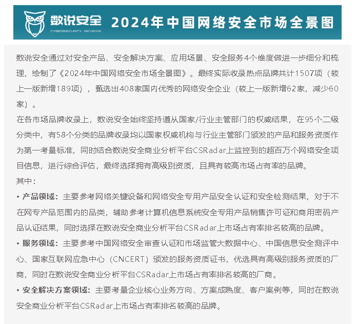 實力認證 | 明朝萬達上榜數(shù)說安全《2024年中國網(wǎng)絡(luò)安全市場全景圖》