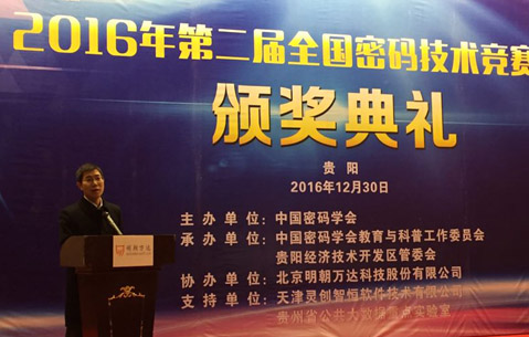12月30日,2016年第二屆全國密碼技術(shù)競賽決賽頒獎典禮及獲獎作品產(chǎn)學(xué)研沙龍在貴州貴陽經(jīng)濟技術(shù)開發(fā)區(qū)舉行。