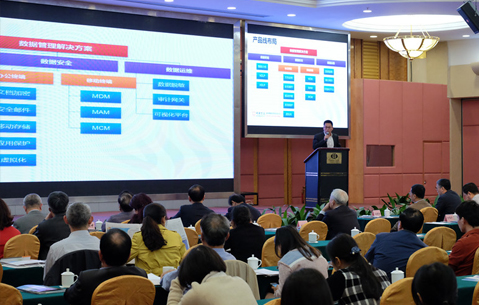 ▲明朝萬達(dá)同與會者現(xiàn)場介紹公司數(shù)據(jù)安全防護(hù)體系