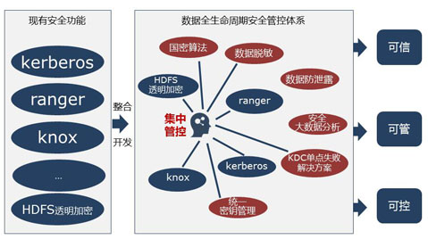 明朝萬(wàn)達(dá)作為數(shù)據(jù)安全領(lǐng)域的領(lǐng)軍企業(yè),在大數(shù)據(jù)時(shí)代的機(jī)遇與挑戰(zhàn)下,圍繞接入風(fēng)險(xiǎn)、訪問(wèn)風(fēng)險(xiǎn)、存儲(chǔ)與計(jì)算風(fēng)險(xiǎn),通過(guò)設(shè)置可信節(jié)點(diǎn)、設(shè)置用戶細(xì)粒度數(shù)據(jù)權(quán)限、端到端加解密的方式等手段構(gòu)建可信大數(shù)據(jù)安全運(yùn)行環(huán)境。并在此基礎(chǔ)上,整合、開(kāi)發(fā)現(xiàn)有安全功能,基于集中管控理念,以數(shù)據(jù)安全為核心,通過(guò)透明加解密、數(shù)據(jù)脫敏、安全大數(shù)據(jù)分析等方式,構(gòu)建數(shù)據(jù)全生命周期的安全管控體系,全方位保障企業(yè)級(jí)大數(shù)據(jù)安全。
