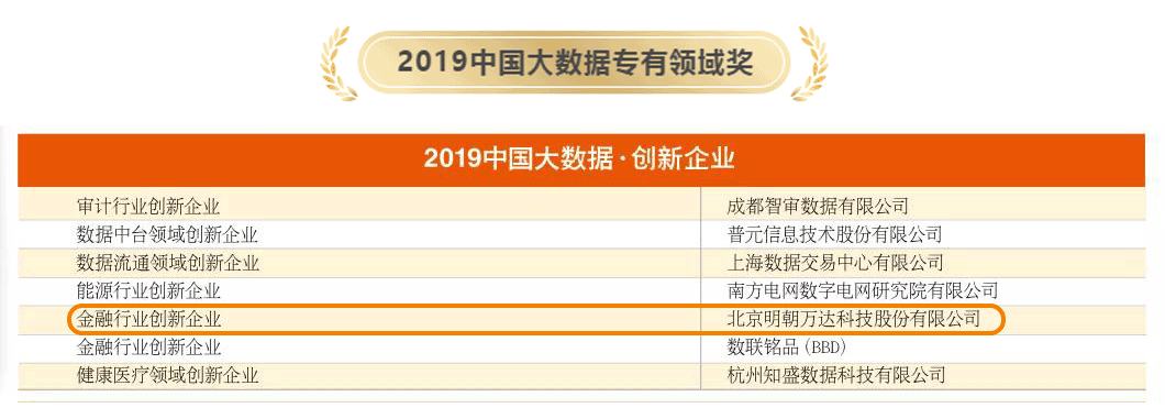 ▲“2019中國大數(shù)據(jù)-金融行業(yè)創(chuàng)新企業(yè)”獎(jiǎng)