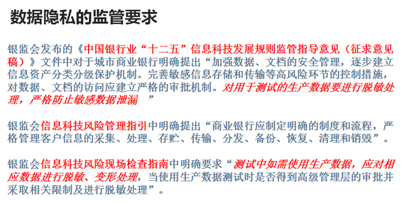 因此,各級(jí)監(jiān)管部門也紛紛出臺(tái)了一系列的監(jiān)管政策,要求各機(jī)構(gòu)必須提高其數(shù)據(jù)安全,嚴(yán)格防止敏感數(shù)據(jù)泄漏。如,銀行業(yè)監(jiān)管協(xié)會(huì)明確提出: