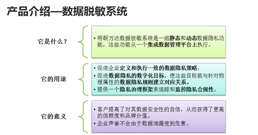 明朝萬(wàn)達(dá)基于對(duì)數(shù)據(jù)安全及市場(chǎng)的理解,建設(shè)一套易使用、易操作的數(shù)據(jù)脫敏系統(tǒng):