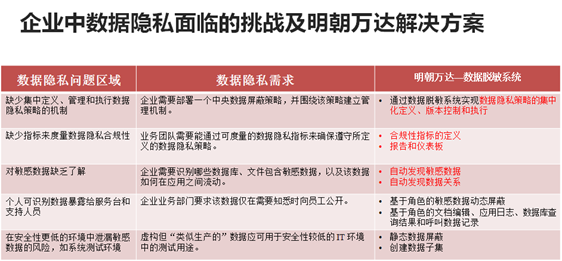 明朝萬(wàn)達(dá)提供的數(shù)據(jù)脫敏系統(tǒng),直面企業(yè)中數(shù)據(jù)隱私所面臨的各種挑戰(zhàn):