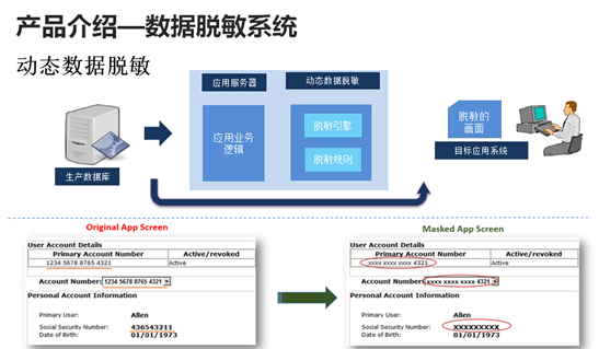 企業(yè)業(yè)務(wù)部門要求該數(shù)據(jù)僅在需要知悉時(shí)向員工公開,基于此時(shí)明朝萬(wàn)達(dá)的數(shù)據(jù)脫敏系統(tǒng)提供了敏感數(shù)據(jù)動(dòng)態(tài)屏蔽功能,可以完成向不同的系統(tǒng)及用戶角色提供不同數(shù)據(jù)呈現(xiàn)。