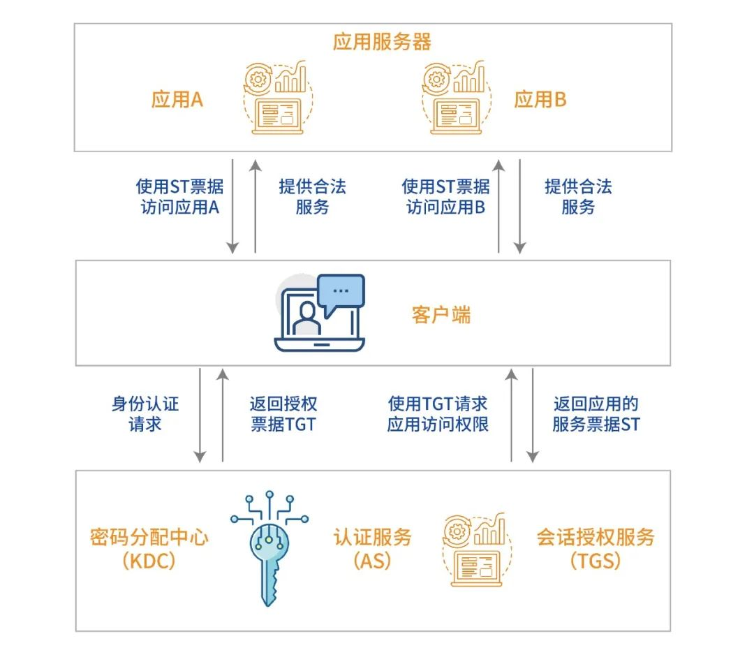 Kerberos是目前使用最廣泛的單點(diǎn)登錄協(xié)議之一,它利用集中式認(rèn)證取代分散認(rèn)證,通過減少用戶身份認(rèn)證次數(shù),減輕服務(wù)器負(fù)擔(dān);同時(shí)使用對(duì)稱密碼算法實(shí)現(xiàn)通過可信第三方的認(rèn)證服務(wù)。