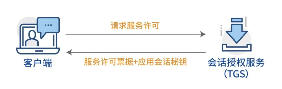 2、TGS用會(huì)話密鑰驗(yàn)證TGT后,獲取服務(wù)器名,從數(shù)據(jù)庫獲得服務(wù)器密鑰KS,隨機(jī)生成客戶端與應(yīng)用之間的通信會(huì)話密鑰和服務(wù)許可票據(jù)。使用會(huì)話密鑰加密N和應(yīng)用會(huì)話密鑰與新產(chǎn)生的服務(wù)許可密鑰一起發(fā)送給客戶端。