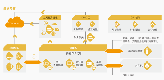 ? ? ? 通過(guò)安裝部署數(shù)據(jù)防泄漏產(chǎn)品,對(duì)銀聯(lián)辦公環(huán)境中的相關(guān)文檔信息、業(yè)務(wù)系統(tǒng)導(dǎo)出信息及數(shù)據(jù)庫(kù)導(dǎo)出信息等進(jìn)行安全防護(hù),確保不被外部入侵違法獲得及內(nèi)部違規(guī)訪問(wèn)外泄。
