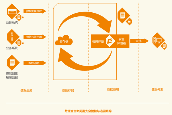 ? ? ? 基于光大銀行一期至五期的數(shù)據(jù)安全建設(shè),在此次的六期建設(shè)中,項目組通過建設(shè)一套數(shù)據(jù)安全管理平臺,以數(shù)據(jù)業(yè)務(wù)屬性為導(dǎo)向,結(jié)合客戶數(shù)據(jù)使用場景進(jìn)行具體管控,實現(xiàn)了客戶數(shù)據(jù)從下載落地、使用、流轉(zhuǎn)、存儲到銷毀整個過程的審計跟蹤、安全管控,真正構(gòu)建了以數(shù)據(jù)全生命周期管理為核心構(gòu)建基礎(chǔ)的動態(tài)管控體系。