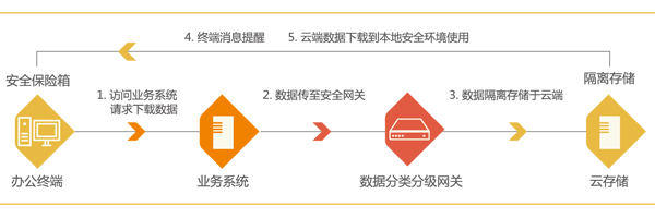 - 數(shù)據(jù)隔離存儲:由云存儲和本地安全保險箱共同構(gòu)建,實現(xiàn)數(shù)據(jù)隔離管控