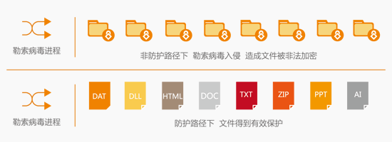 勒索病毒進(jìn)程即使訪問路徑下文件,由于沒有文件的操作權(quán)限,也不會(huì)導(dǎo)致文件被非法加密的后果,從而達(dá)到防勒索病毒的目的。