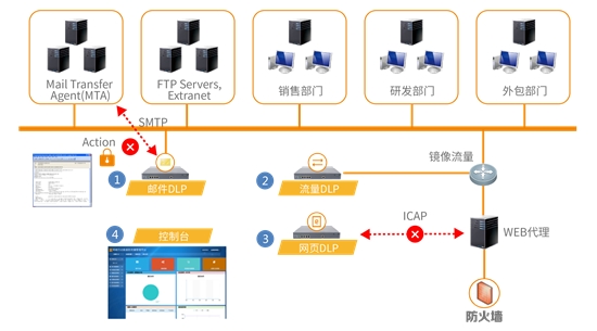 Chinasec(安元)數(shù)據(jù)防泄漏系統(tǒng)針對企業(yè)面臨的數(shù)據(jù)泄漏風(fēng)險,采用內(nèi)容分析引擎,利用關(guān)鍵字、正則表達(dá)式、文件指紋、自然語言處理等規(guī)則,對企業(yè)外發(fā)數(shù)據(jù)進(jìn)行解析與掃描,實時識別、監(jiān)控、保護(hù)企業(yè)敏感數(shù)據(jù)。對即將發(fā)生、正在發(fā)生的泄漏敏感數(shù)據(jù)行為按照預(yù)置策略及時阻斷并告警,防止企業(yè)敏感數(shù)據(jù)傳輸?shù)狡髽I(yè)外部,有效避免數(shù)據(jù)泄漏帶來的安全風(fēng)險,實現(xiàn)對企業(yè)外發(fā)敏感數(shù)據(jù)的可知、可見、可控。